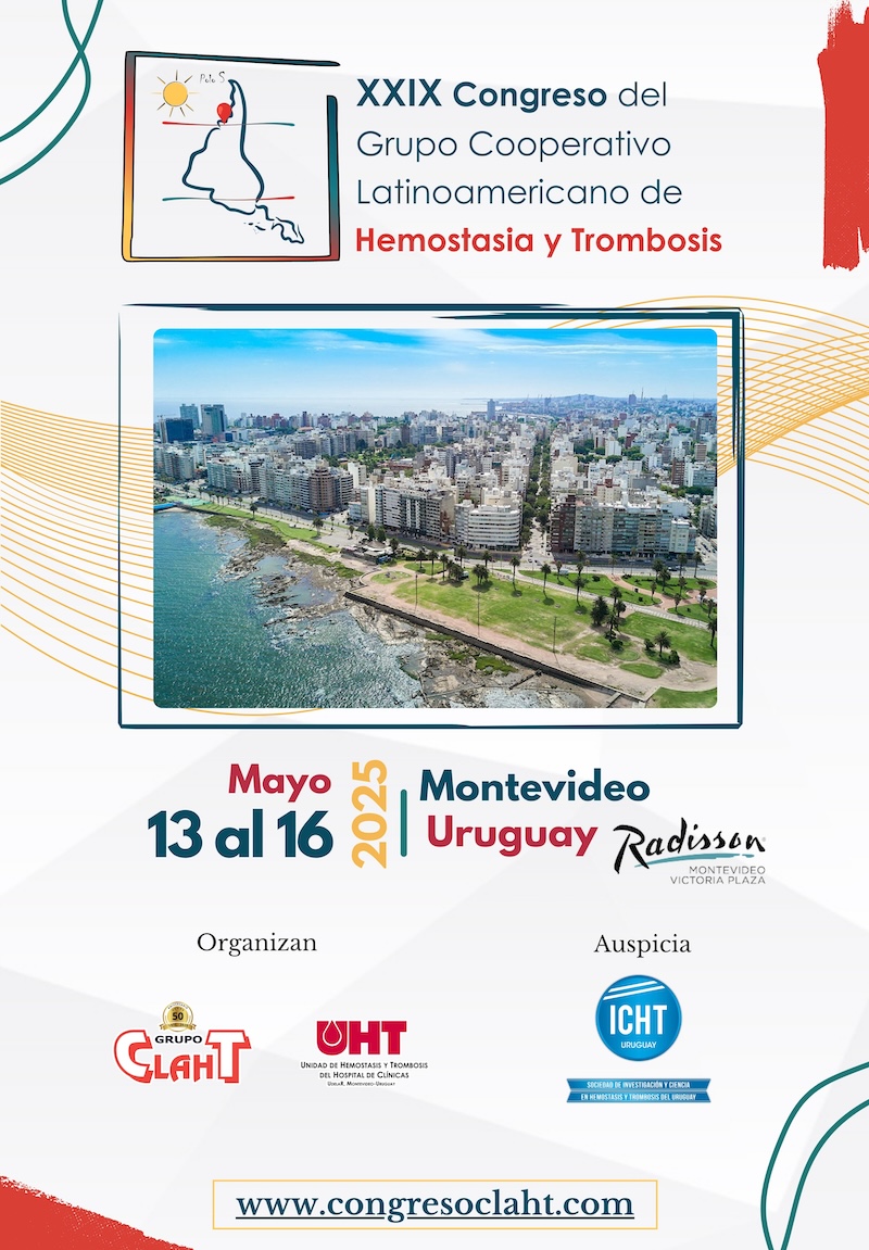 carruselmenuPublicacionesXXIX Congreso del Grupo Cooperativo Latinoamericano de Hemostasia y Trombosis – Mayo 20205 User6 meses atrás6 meses atrás00 minutos Navegación de entradas Anterior: Coloquio de Trombosis Venosa en Diferentes Escenarios – Septiembre 2024Siguiente: 1er Registro Nacional ETEV en Uruguay
